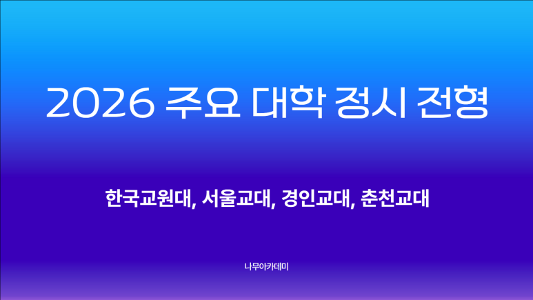 그래서 주요 대학교들의 2026학년도 정시 전형을 살펴보려고 합니다.