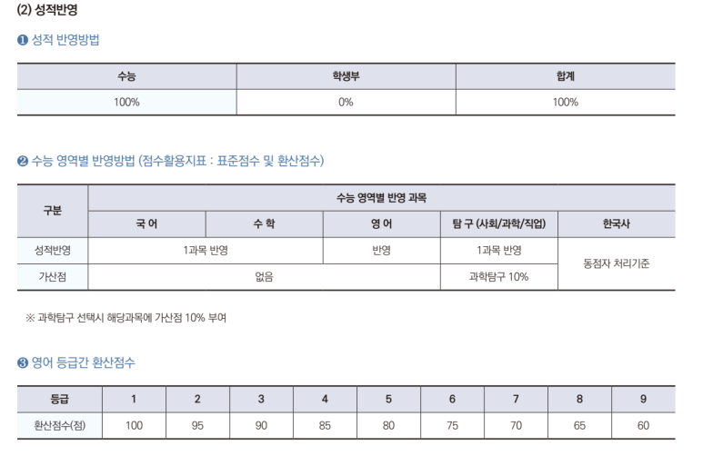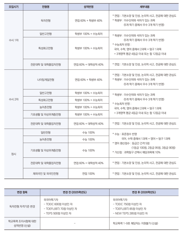 * 참고로 추후 변경되는 내용이나 생략된 내용이 있을 수 있으니 자세한 내용은 반드시 각 학교 입학처 홈페이지를 통해 확인해 주시길 바랍니다.