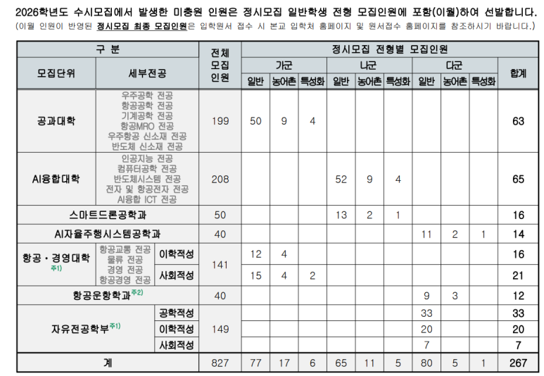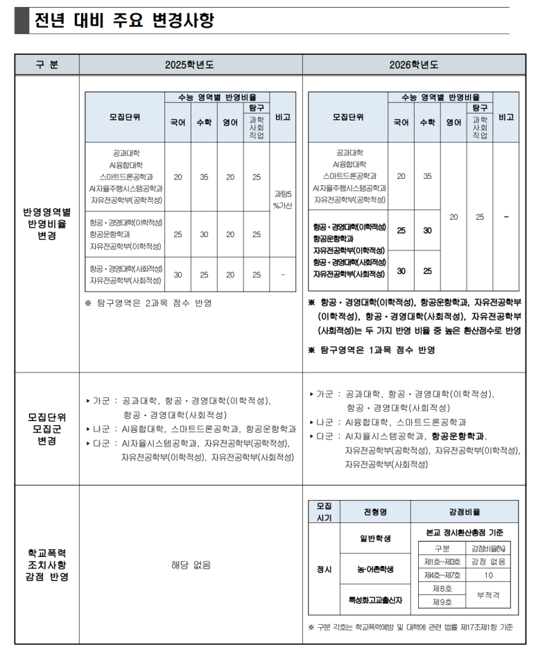 2026학년도 정시 전형 - 한국항공대, 한국교통대, 서울여자간호대