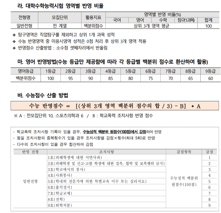 ▶전형 방법: 수능 100% (예체능계열, 스포츠의학과 제외)