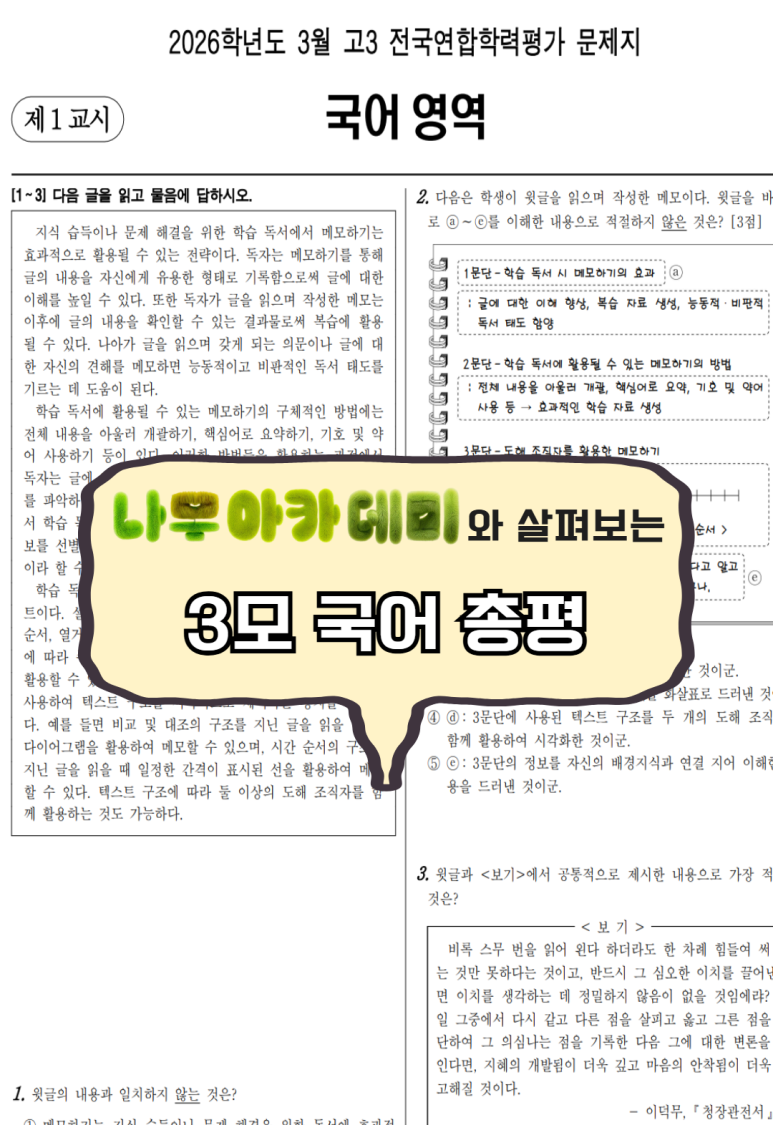 따라서 이번 글에서는 고3 3월 학평 국어 영역에 대한 총평을 다루고자 합니다:)